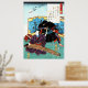 Un ninja, tirant son épée de son écharpe, se faufile sur un musicien jouant le Koto d'une main tandis que dans l'autre levant un ventilateur plié. Une page de la série, Inaka Genji. D'une première coupe de bois du 19ème siècle (1853), Suma, d'Utagawa Toyokuni. Tous droits réservés © 2012 padre art
