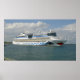 Après une visite d'escale à la Côte de l'Espace, un paquebot allemand avec un visage souriant sur son arc fait son chemin vers le canal Canaveral, vers l'océan Atlantique. Son nom est Aida Luna