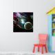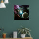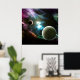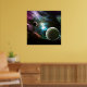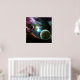 L'art spatial numérique avec une planète, une lune et une nébuleuse.