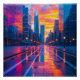 Ce paysage époustouflant de néon capture un horizon futuriste illuminé par un coucher de soleil. Les reflets vibrants sur les rues humides améliorent l'esthétique cyberpunk, créant un visuel étonnant de l'énergie urbaine. Parfait pour les amateurs de déco moderne, de mode d'inspiration technologique et de paysages urbains.