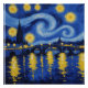 La paleta potencia el contraste dramático que caracteriza a Van Gogh: azules profundos y púrpuras se enfrentan a amarillos y blancos luminosos de estrellas y reflejos en el agua. La escena evoca una inmensidad cósmica y una profunda emoción, perfecta para los amantes del arte expresionista y los diseños con historia.