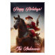 Ce design de Noël amusant montre Saint Nicolas dans un casquette de cowboy rouge, à cheval, et brandissant un énorme revolver.