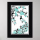 Poster Noir, aqua, paon blanc et fleurs de cerisiers