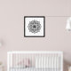 Illustration de mandala floral noir sur un arrière - plan blanc avec cadre noir.