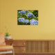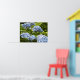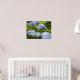 De belles hydrangées bleues dansent au milieu de leur feuillage verdoyant. Un grand poster ou imprimé fleuri pour la maison ou le bureau.