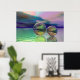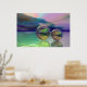 Un océan onirique et paisible avec dans la plus grande bulle deux dauphins sauteurs, se rencontrant dans le ciel. Ce produit peut être customisé en ajoutant (votre propre) texte