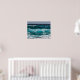 Poster est montré avec une photo empreinte de belles vagues océaniques. Customisez cet objet ou achetez tel quel. Image stock