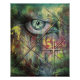 Tableau abstrait d'un oeil, avec des cartes et une croix au premier plan.