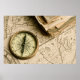 Poster Old compass over Ancient Map