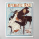 Couverture vintage de la feuille de musique pour la chanson "Operatic Rag", montrant une femme en robe blanche et un grand casquette noir & blanc jouant un piano à queue.