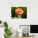 Cette belle impression présente une photo détaillée d'une jolie fleur de Zinnia orange. La photographie a été prise en utilisant la macro photographie et montre la délicate beauté des pétales oranges et centre jaune de cette belle fleur.