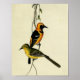 Peinture vintage d'un Oriole à capuchon. De beaux oiseaux oranges et jaunes perchent daintivement sur une branche.avec arrière - plan crème. Cette illustration a été réalisée à l'époque victorienne, en 1862 par l'artiste et ornithologue américain John Cassin.