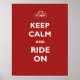 Une pièce sur le slogan britannique vintage Keep Calm and Ride On, faite dans une police authentique en blanc apparaît avec une silhouette de vélo pour un design amusant et cool sur le rouge authentique. Cherchez des chemises, des sacs, des tasses et beaucoup d'autres modèles Keep Calm dans mon magasin Zazzle.