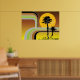 Poster Palmiers Tropical Retro Beach Sunset Stripes Mod