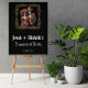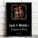 Ce panneau de bienvenue pour la fête de fiançailles présente un design intrigant et visuellement saisissant, avec un fond noir qui sert de toile de fond dramatique à l'illustration principale. L'invitation elle-même est faite de papier de haute qualité à texture veloutée, ajoutant une touche de luxe à l'apparence générale.