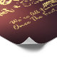 Pancarte de mariage pour choisir un siège et non un côté - Écriture en faux or, fleurs aquarelles élégantes roses blanches et roses pêche et guirlandes lumineuses sur fond rouge burgundy.