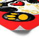 Ce design unique est orné d'un adorable ours de panda bébé assis décoré de tourbillons et de gouttes jaunes. Un grand coeur se trouve au milieu de la poitrine de l'ours avec une petite étoile à cinq points apparaissant au sommet du front. Ces simples motifs s'inspirent du Jour des crânes de sucre morts, tout comme les pédales de fleurs qui entourent chaque oeil sombre. La bouche cousue donne aussi au panda une apparence zombie mignonne. Ce joli design symétrique est une représentation unique de cette belle créature.
