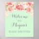 Bienvenue sur l'affiche Baby shower avec nom personnalisé en vert menthe pastel avec motif vintage d'aquarelle rose pâle.