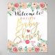 Modèles d'affiche de panneau de bienvenue élégant pour Baby Shower vintage à motif floral aquarelle. Tous les styles de texte, couleurs et tailles peuvent être modifiés pour répondre à vos besoins.