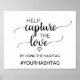 Ce panneau de calligraphie noire simple "capturez l'amour" est parfait pour un mariage rustique. Le design minimaliste présente une police de script au pinceau élégante et un cœur féminin charmant. Le panneau indique "aidez à capturer l'amour en utilisant le hashtag : votre hashtag".