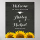 Symbole de réception de mariage Modèle élégant de tableau de bord de tournesols. (1) La taille par défaut est de 8 x 10 pouces, vous pouvez la changer en une taille plus grande. (2) Pour plus de personnalisation, cliquez sur le lien "customiser plus loin" et utilisez notre outil de conception pour modifier ce modèle. (3) Si vous avez besoin d'aide ou d'articles correspondants, veuillez me contacter.