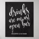 Un élégant panneau mariage de pointe, avec le texte "Les boissons sont sur nous! Open Bar " dans une police de script extravertie, la texture de la brosse ajoute une sensation spontanée et ludique. La couleur arrière - plan peut être personnalisée selon vos besoins et préférences, s'il vous plaît contactez-moi si vous avez une demande spéciale.
