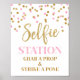 Affiche de station Selfie pour baby shower, douche nuptiale, ou mariage en blanc, rose et or parties scintillant confetti motif avec lettrage de style manuscrit. Idéal pour une douche de baby shower, mariage ou nuptiale.