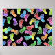 Illustration de nombreuses empreintes colorées avec des visages souriants joyeux qui se baladent contre un arrière - plan noir. Image disponible sur divers cadeaux et produits.