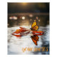 Une scène nature paisible et peinte, avec un papillon monarque reposant délicatement sur une feuille d'automne flottante. Des ondulations douces dans l’eau créent des distorsions douces du reflet du papillon, tandis que la lumière chaude dorée baigne la scène dans une atmosphère éclatante. Des couleurs automnales riches dans les tons orange, jaune et terreux apportent un sentiment de paix et de beauté naturelle. Idéal comme mur d'art pour les salons, les chambres ou les espaces d'inspiration nature, cette oeuvre capture l'élégance tranquille de la chute et la beauté fragile du papillon.
