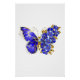 Bijoux, bleu, saphir, papillon aux fleurs pétillantes avec aile décorée de bleu, fleurs précieuses avec feuilles d'or sur arrière - plan blanc.