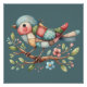 Un joli chanteur patchwork perche gracieusement sur une branche fleurie, ses plumes fabriquées à partir d'un ensemble de tissus fantaisistes imprimés dans des couleurs douces et d'inspiration vintage. Le design allie le charme de l'art populaire à la chaleur du cottage, apportant une sensation de couture à la main à votre espace. Les flancs détaillés et les délicats accents de couture ajoutent profondeur et texture, tandis que l'arrière - plan turquoise muet améliore les motifs vibrants de patchwork de l'oiseau. Parfait pour les amoureux de la nature, les amateurs de courtepointes ou toute personne qui apprécie l'art rustique et chaleureux. L'IA a généré des oeuvres d'art.