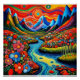A.I. a créé l'impression d'un paysage psychédélique vif qui grouille de fleurs colorées et de contrastes fluviaux contre des sommets spectaculaires et bleus sous un ciel de nuages tourbillonnants.