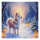 Poster Peaceful Akita on Snow Lantern Path Christmas Dog