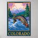 Fly Fishing Scene - Colorado - LP Poster original - a été créé en 2008. Cette image représente des scènes du Colorado.