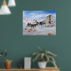 Peinture à la grange. Cette affiche est décorée d'une aquarelle représentant une scène hivernale avec des chevaux et un coach de scène passant devant une grange. Une excellente idée cadeau.