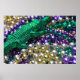Les perles mardi Gras violettes, dorées et vertes sont accentuées par une grande perle d'alligator verte. Customisez et ajoutez votre propre texte à l'impression !