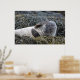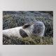 Le phoque commun posé sur un lit d'algues égratignant une démangeaison.