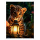 Un petit léopard mignon dans la jungle. Un lanterne devant lui éclairant lui et son environnement proche. C'est un bon motif pour la chambre d'enfant, mais aussi pour le couloir ou le salon.