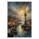 Poster Phare côtier et village balnéaire Sunset Art