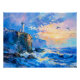 Peinture impressionniste d'un phare sur un littoral rocheux au coucher du soleil. Le ciel dramatique, les vagues qui s'écrasent et la lumière dorée créent un paysage marin dynamique, plein de mouvement et d'atmosphère.