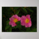 Deux roses sauvages fleurissent côte à côte parmi les feuilles verts frais. Chaque fleur a cinq beaux pétales roses. Ces roses sauvages à l'ancienne vous apporteront un délice frais et floral. Cette belle photographie botanique s'avère également très agréable sur de petites affiches.