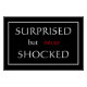 Affichez sur votre mur, à la maison ou à l'école, une affiche de phrase "Surpris mais jamais Choqué". Arrière - plan noir avec lettrage blanc et rouge.