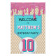 Poster Pink Turquoise Baseball Drip Birthday Welcome Sign