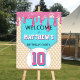 Poster Pink Turquoise Baseball Drip Birthday Welcome Sign