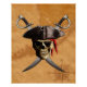 Pirate crâne, carré oculaire, casquette pirate, et deux épées croisées pour un Jolly roger classique avec une carte nautique vintage des Florida Keys, maison historique et base pour Pirates.