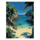 Une anse isolée, encadrée de palmiers et de sable blanc immaculé. L'eau turquoise et limpide lèche doucement le rivage, avec de petites vagues qui s'enroulent. Au loin, un petit bateau dérive tranquillement, ajoutant au calme. Ce paradis tranquille et serein évoque le sentiment d'une retraite cachée, intacte et tranquille, offrant un moment d'évasion dans la beauté intacte de la nature.
