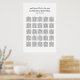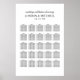 Un plan de table de mariage de style monogramme épuré et raffiné avec une typographie blanche subtile sur fond clair. Vos noms sont centrés avec élégance comme point de mire, avec "Célébration de mariage en l'honneur" en écriture délicate au-dessus. L'emplacement des invités est organisé dans une disposition de tableau claire en dessous. Entièrement personnalisable.