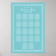 Poster Plan de table de mariage élégant Aqua Bleu avec fi