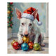 Poster Playful Bull Terrier Dog Guarding Christmas