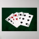 Cinq cartes à jouer formant le poker main droite. Une ligne droite est une main de poker, où les cinq cartes de rang séquentiel dans au moins deux combinaisons différentes. Deux droites sont classées en comparant la carte la plus élevée de chacune. Deux droites avec la même carte haute sont de valeur égale, les costumes ne sont pas utilisés pour les séparer. C'est la main droite de dix à six.
